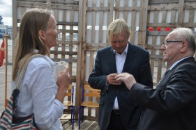 Fhv. borgmester Thorkild Simonsen konverserer med receptionsgæsterne på ASM
