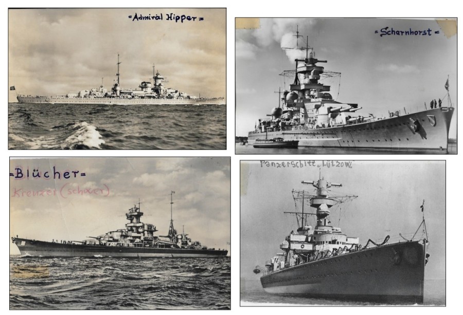 Øverst "Admiral Hipper" og "Scharnhorst"