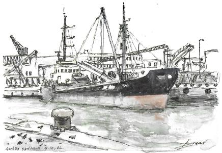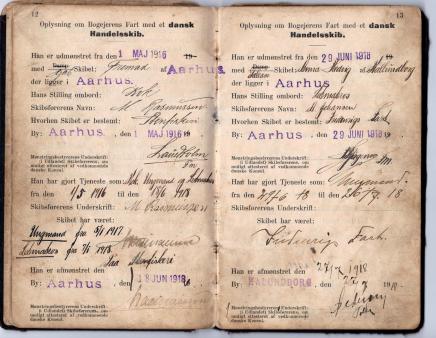 Forleden kom han igen igen forbi med nogle godter: Et maleri med motiv fra Aarhus havn, en samling "Havnemotiver fra Aarhus ca. 1910" samt en søfartsbog med den interessante bemærkning: "8. marts 1966 - var ikke ombord ved afsejling". Søfartsbogen stammer fra et dødsbo.