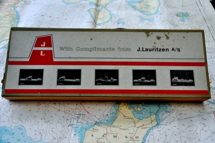 Denne æske, mrk. "JL With Compliments from J Lauritzen A/S" havde Brian Clausen med. Den er produceret af Svaba Line, Reberbanen 12, 5960 Marstal, dengang telefonnummeret begyndte med 09. Her nogle få eksempler på de mange modeller, der kan bygges af sættet.