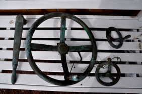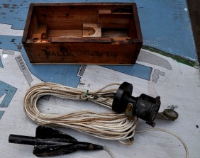 En håndlog, fra før man opfandt slæbeloggen. Komplet er den, bortset - naturligvis - for logglasset. Det har tidens tand gnavet i stykker.