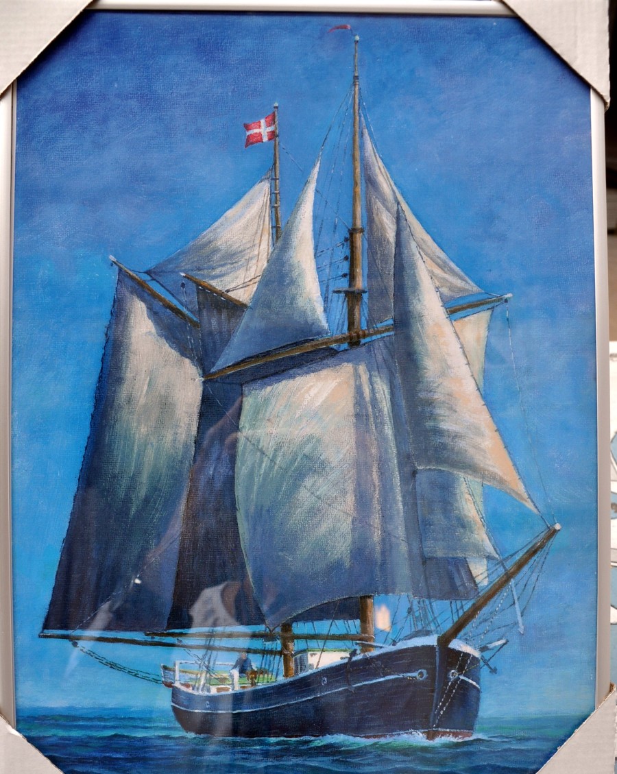 Forleden kunne v indlemme dette flotte maleri i samlingerne. Eddy Würtz i Kjellerup har betænkt os med E. Mortensens flotte maleri med skoleskibet "Georg Stage" som motiv. Maleriet har i mange år hængt på væggen hos Eddy Würtz' forældre.