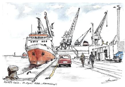En billedserie fra havnen, blandt andet med et billede af DSBs kulkran på Mellemarmen, kom også med hjem.